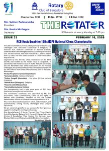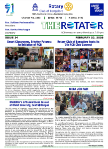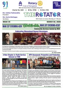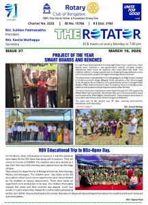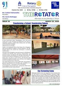 91st year, RCB is one of India’s largest and oldest Rotary Club. With 320+ committed Bengalureans, RCB runs very large projects for Education, Health, Economic well-being, Youth and the Environment.