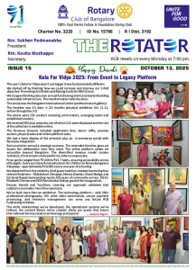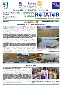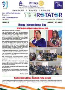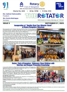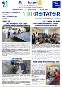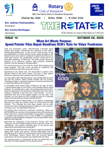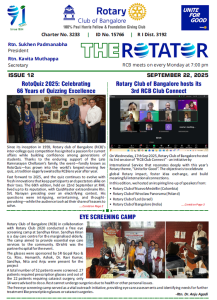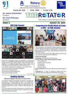 91st year, RCB is one of India’s largest and oldest Rotary Club. With 320+ committed Bengalureans, RCB runs very large projects for Education, Health, Economic well-being, Youth and the Environment.