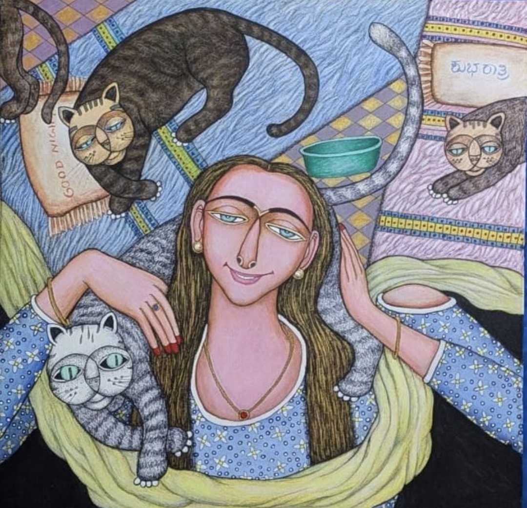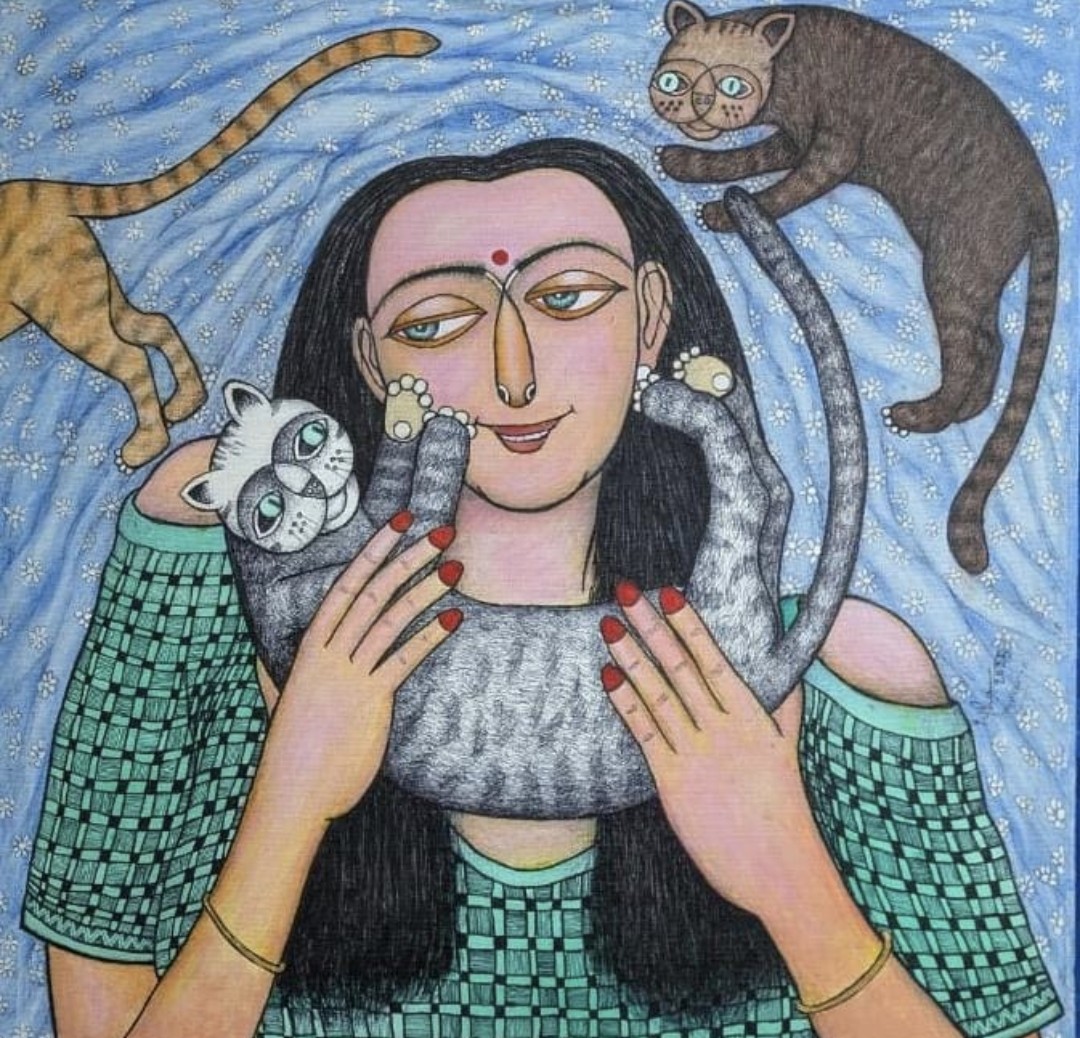 ₹65,000 Including GSTThe painting shows the relation of pets in a family and the closeness between humans and animals.