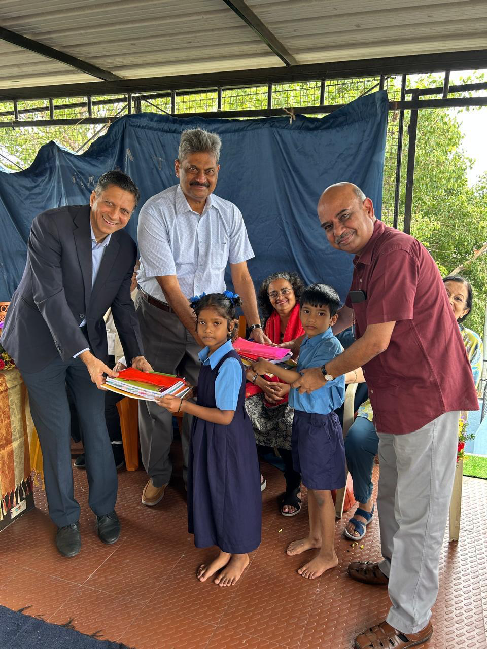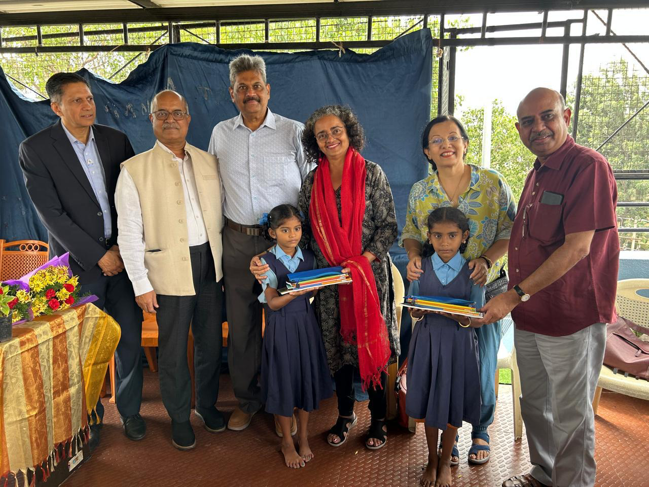 Rotarians President Sukhen Padmanabha, PP Ranga Rao, Srini Velidanda, Chellamani, Kalyani Talukder, Satej Alur, and Sneha Naidu participated in the study material distribution program with Rtn. Surendar and Ann Ashwini.