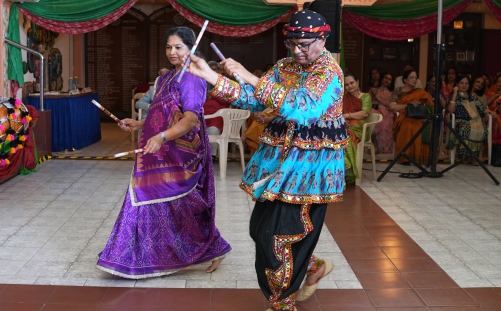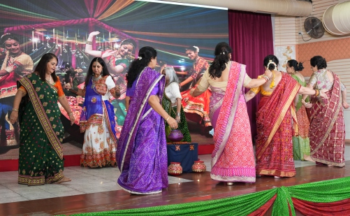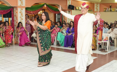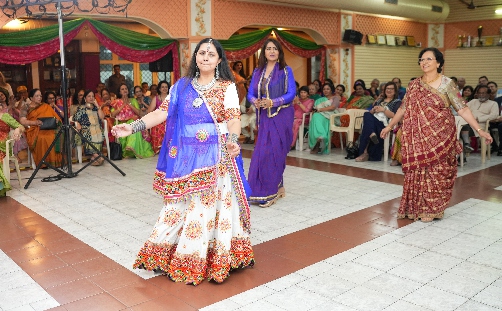 Ladies draped in traditional Gujarati saris carrying beautifully decorated garvi (pots), swayed rhythmically and gracefully as they invoked divine blessings.