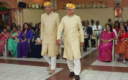 (long-sleeved upper garment), and the exquisite gharchola wedding saree. Rtn Mustali and Rtn Musten looked resplendent in sherwani and golden peta,