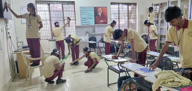 Before the school closes at 3:30 pm the first bell will ring at 3:25 pm, marking the start of a five-minute cleanliness drive. During this time, all students will work together to collect waste from classrooms and school premises and dispose of it in dustbins. They will also wipe classroom boards and clean their benches.