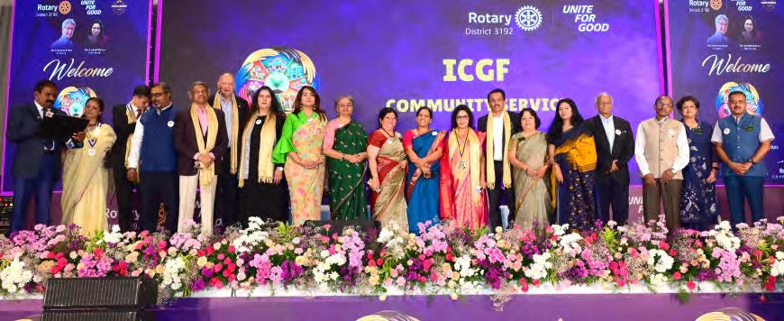 The opening address by Rtn. Sukhen Padmanabha, President of the Rotary Club of Bangalore, highlighted the significance of ICGF and its growing impact. The purpose of Community service ICGF was highlighted by PDG Rtn. Srinivas Murthy. This was followed by Rtn. Dileep Pillai, District Director, Community Services, who highlighted significant projects of RCB and other clubs. He shed light on key programs such as Smart Board installations, the Floor-to-Desk initiative, StrongHer, and ShieldHer, all of which continue to create meaningful change at the grassroots level.