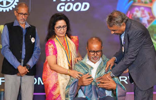 An inspiring address by Rtn. Elizabeth Cherian further elevated the evening. She emphasized the importance of reaching the urban poor and serving at the grassroots. One particularly powerful example she shared was of Mr. Gangadhar Tilak, who personally filled nearly 2000 potholes in Hyderabad, a reminder that impactful service often begins with individual initiative. Her words left the audience deeply motivated and reflective.