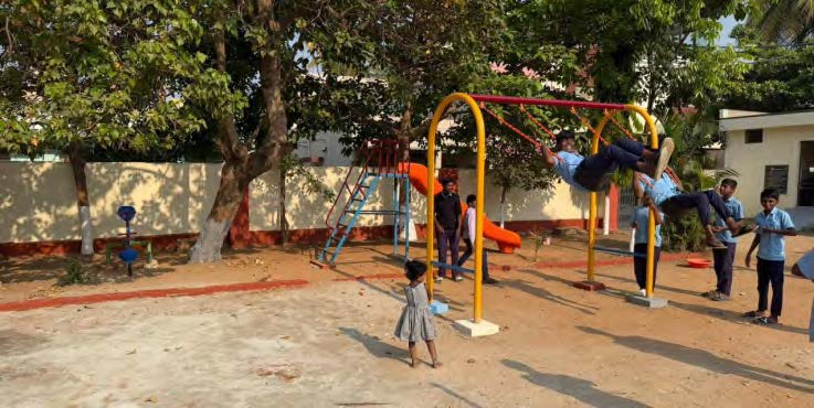 The Rotary Club of Bangalore undertook extensive refurbishment, including new flooring, fresh painting, waterproofing, and structural repairs. To enhance the learning environment, play equipment was installed, bringing joy and activity to the children.